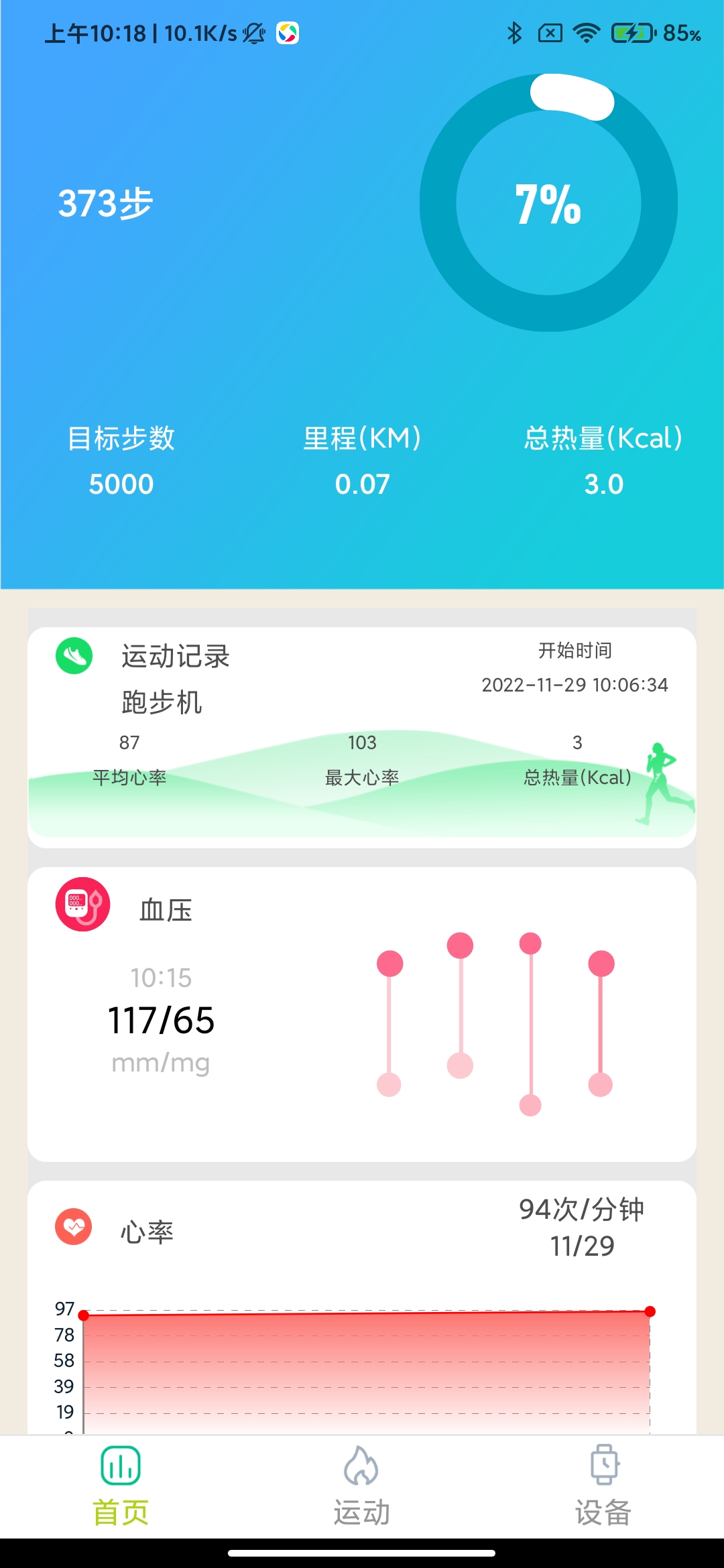 1)记录每天的运动步数,计算每日消耗的卡路里、运动距离。并可以设置步数目标,激励自己。